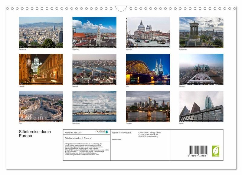 QUALITÄT - Hochwertiger Fotokalender mit 12 wunderschönen Motiven auf lichtbeständigem Bilderdruckpapier, robuste Spiralbindung mit Aufhängebügel.NACHHALTIG - deutliche Abfallreduzierung durch bedarfsgerechte Einzelstückfertigung, umweltfreundliches FSC-zertifiziertes Papier, Produktion in Deutschland, klimabewusste Logistik.PERFEKTES GESCHENK - Kalender für Freunde und Familie, für Kinder und Erwachsene, jung und alt, zu Weihnachten, Geburtstag oder zwischendurch.VIELFALT - Bildkalender in verschiedenen Formaten, z.B. DIN A5, DIN A4, DIN A3 sowie DIN A2. Ob Naturmotiv, Gemälde oder Fotos, ideal für ein persönliches Wohlfühlambiente.Streifzug durch einige der schönsten Städte Europas. von Autor(in): Peter Härlein