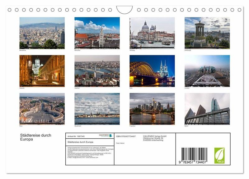 QUALITÄT - Hochwertiger Fotokalender mit 12 wunderschönen Motiven auf lichtbeständigem Bilderdruckpapier, robuste Spiralbindung mit Aufhängebügel.NACHHALTIG - deutliche Abfallreduzierung durch bedarfsgerechte Einzelstückfertigung, umweltfreundliches FSC-zertifiziertes Papier, Produktion in Deutschland, klimabewusste Logistik.PERFEKTES GESCHENK - Kalender für Freunde und Familie, für Kinder und Erwachsene, jung und alt, zu Weihnachten, Geburtstag oder zwischendurch.VIELFALT - Bildkalender in verschiedenen Formaten, z.B. DIN A5, DIN A4, DIN A3 sowie DIN A2. Ob Naturmotiv, Gemälde oder Fotos, ideal für ein persönliches Wohlfühlambiente.Streifzug durch einige der schönsten Städte Europas. von Autor(in): Peter Härlein