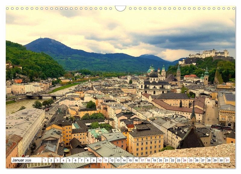 Januar: Blick auf die Altstadt und Festung Hohensalzburg, Salzburg, Österreich