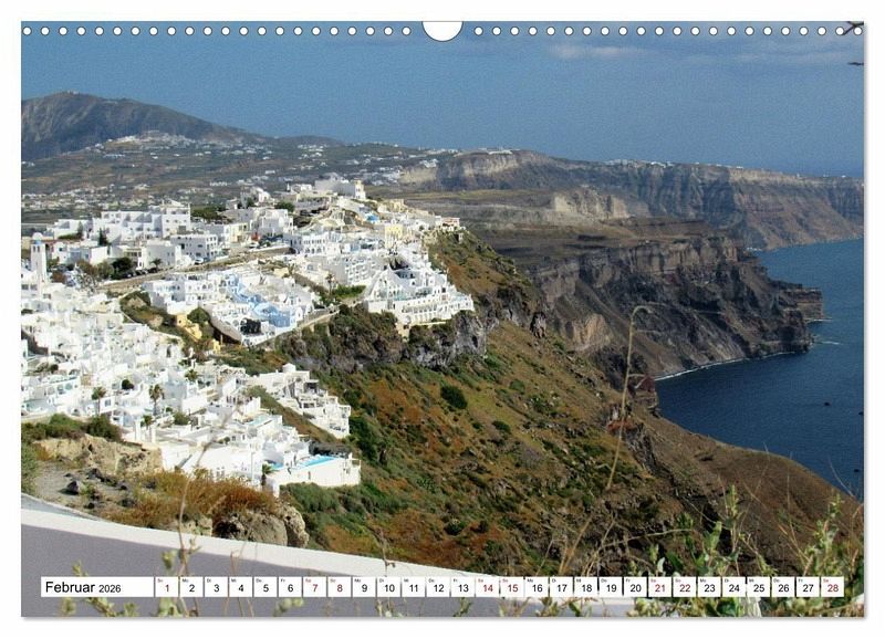Februar: Blick auf Thira, Santorin, Griechenland