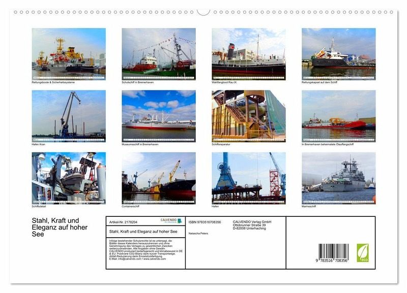 PREMIUM-LINIE - Brillanter Fotokalender mit 12 wunderschönen Motiven, Kunstdruck in Hochglanz in Museumsqualität.QUALITÄT - edle Materialien, stabile Rückwand mit 2 innovativen Einstecktaschen für eine optimale Präsentation an der Wand.NACHHALTIG - deutliche Abfallreduzierung durch bedarfsgerechte Einzelstückfertigung, umweltfreundliches FSC-zertifiziertes Papier, Produktion in Deutschland, klimabewusste Logistik.PERFEKTES GESCHENK - Kalender für Freunde und Familie, für Kinder und Erwachsene, jung und alt, zu Weihnachten, Geburtstag oder zwischendurch.Faszinierende Aufnahmen aus dem Hafen Bremerhaven zeigen eindrucksvolle Schiffe in Szene gesetzt - zwischen industrieller Stärke und ästhetischer Linienführung. von Autor(in): Natascha Peters