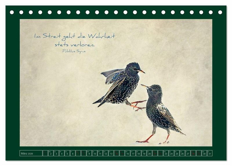 QUALITÄT - Hochwertiger Fotokalender mit 12 wunderschönen Motiven auf lichtbeständigem Bilderdruckpapier, robuste Spiralbindung.NACHHALTIG - deutliche Abfallreduzierung durch bedarfsgerechte Einzelstückfertigung, umweltfreundliches FSC-zertifiziertes Papier, Produktion in Deutschland, klimabewusste Logistik.PERFEKTES GESCHENK - Kalender für Freunde und Familie, für Kinder und Erwachsene, jung und alt, zu Weihnachten, Geburtstag oder zwischendurch.VIELFALT - Bildkalender in verschiedenen Formaten, z.B. DIN A5, DIN A4, DIN A3 sowie DIN A2. Ob Naturmotiv, Gemälde oder Fotos, ideal für ein persönliches Wohlfühlambiente.Stare, Weisheiten und Sprichwörter von Autor(in): Heike Hultsch