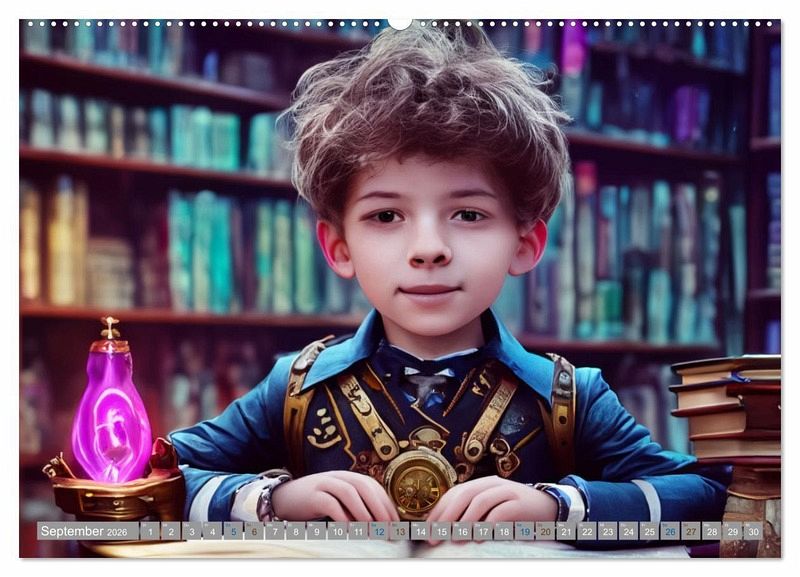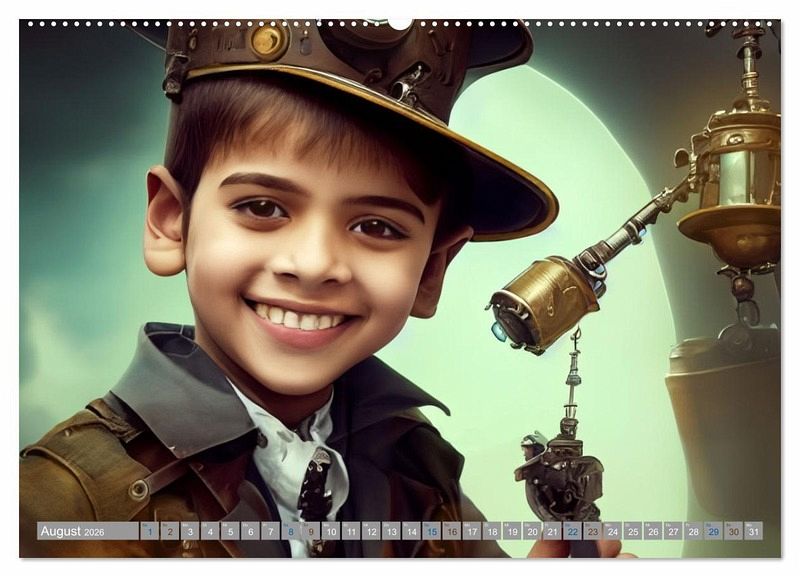 Wenn Sie einen Kalender mit oder für Jungen im Steampunk-Stil suchen, haben wir genau das Richtige für Sie! Unser Kalender ist voller fantastischer Illustrationen von jungen Abenteurern, Erfindern und Kapitänen in einer Welt voller Abenteuer und Zahnräder. Jeder Monat zeigt eine andere Szene aus der Welt des Steampunks, die Sie in diese andere Welt entführt.