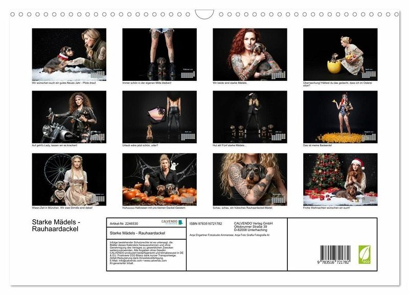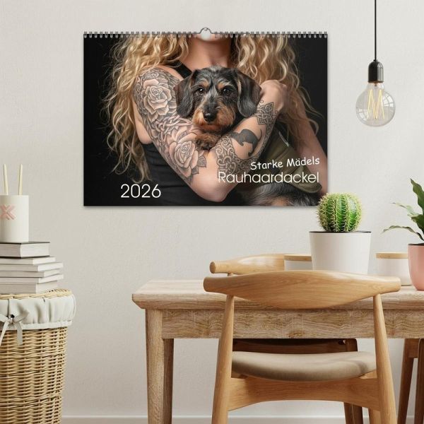 Sie sind eine echte Augenweide: Die Rauhaardackel-Mädels mit dem Charme und der Ausstrahlung von Super-Models. Die starken Mädels zaubern Ihnen jeden Monat ein Lächeln ins Gesicht. Zu jeder Jahreszeit und jedem Anlass im Jahr stehen die Schönheiten im Mittelpunkt. Ja, die Rauhaardackel und ihr Personal wickeln jeden um den kleinen Finger - Pfote drauf! Dieser schöne Kalender wurde mit Hilfe von KI gestaltet.