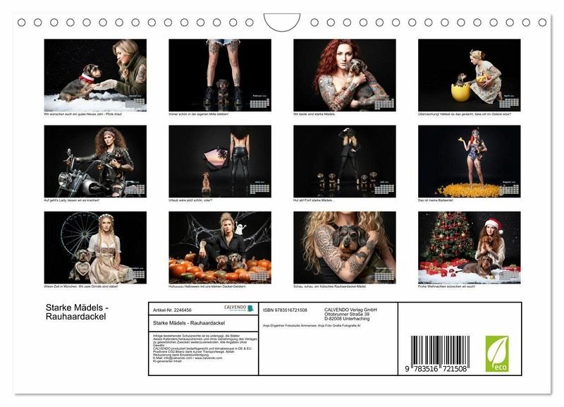 Sie sind eine echte Augenweide: Die Rauhaardackel-Mädels mit dem Charme und der Ausstrahlung von Super-Models. Die starken Mädels zaubern Ihnen jeden Monat ein Lächeln ins Gesicht. Zu jeder Jahreszeit und jedem Anlass im Jahr stehen die Schönheiten im Mittelpunkt. Ja, die Rauhaardackel und ihr Personal wickeln jeden um den kleinen Finger - Pfote drauf! Dieser schöne Kalender wurde mit Hilfe von KI gestaltet.