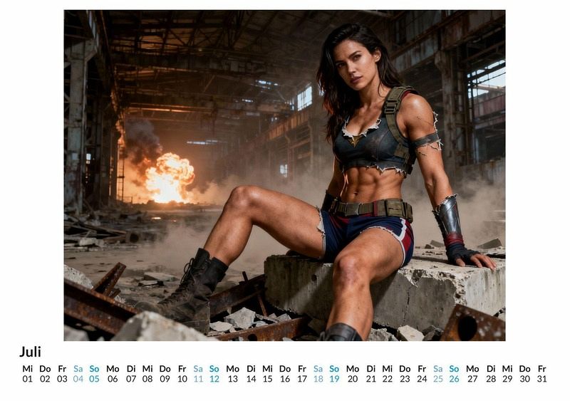 Nach dem epischen Kampf, wenn der Staub sich legt und die Stille einkehrt, offenbart sich die wahre Essenz einer Heldin. Der Kalender "Starke Superheldinnen" widmet sich genau diesen Momenten. Er zeigt die Kämpferinnen nicht im Höhepunkt der Schlacht, sondern in der verletzlichen Phase danach, wenn die Anspannung weicht und die Spuren des Gefechts sichtbar werden. Dieser Kalender ist eine ausgezeichnete Wahl: * Für Liebhaber von Superheldinnen-Darstellungen, die eine andere Seite der Charaktere zeigen. * Für Sammler von Kalendern mit einem besonderen visuellen Konzept. * Für alle, die eine kraftvolle und zugleich sinnliche Ästhetik schätzen. Jeder Monat präsentiert eine neue Protagonistin in einer Szene voller Ausdruckskraft. Die zerrissenen Anzüge geben den Blick auf Haut und feine Dessous frei und erzählen Geschichten von überstandenen Herausforderungen. Diese Motive wurden nicht fotografiert oder gemalt, sondern durch die kreative Kraft von Rechenalgorithmen zum Leben erweckt, um eine einzigartige Bilderwelt zu erschaffen. Das erwartet den Käufer: * Zwölf Monatsmotive und ein Deckblatt im Kalender "Starke Superheldinnen". * Großformatige Seiten, die die Details der Darstellungen zur Geltung bringen. * Ein übersichtliches Kalendarium für die Planung des Jahres. Dieser Kalender fängt die Momente nach dem Sieg ein und ist eine Hommage an die unbezwingbare Kraft und die verborgene Seite der Heldinnen. Eine Entdeckungsreise durch zwölf kraftvolle Szenarien erwartet den Betrachter.