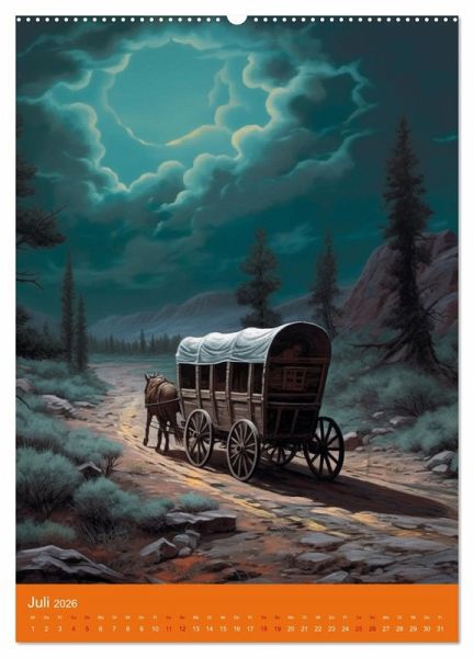 Erleben Sie die raue Schönheit der Prärie, wenn ein einsamer Cowboy dem Sonnenuntergang entgegen reitet, oder spüren Sie die Aufregung eines Überfalls auf einen dampfenden Zug durch Gesetzlose des Wilden Westens. Von Cowboys am Rodeo bis zu romantischen Szenen am Lagerfeuer unter dem Mondlicht - jeder Monat fängt die Essenz dieser Ära ein.