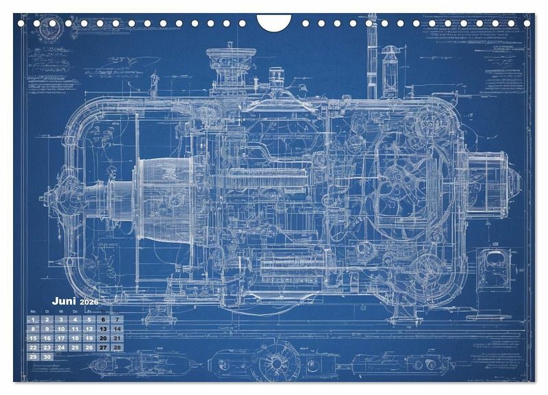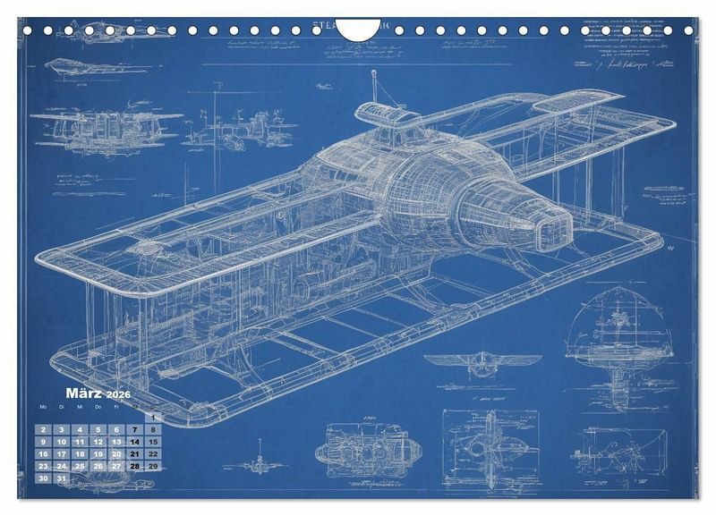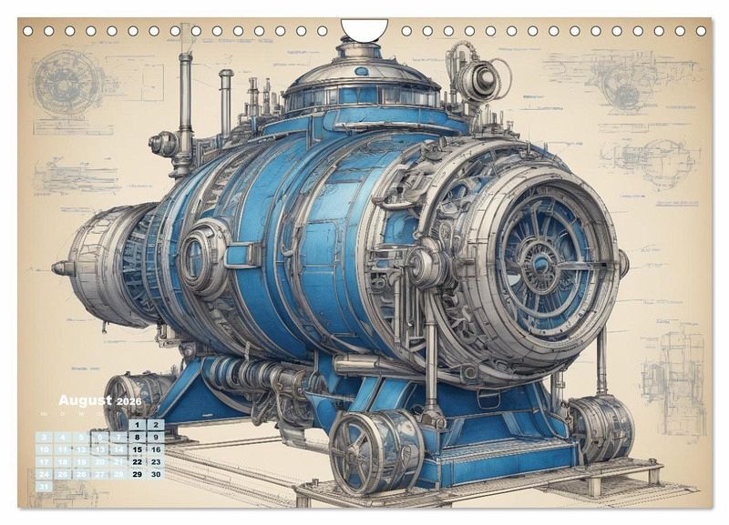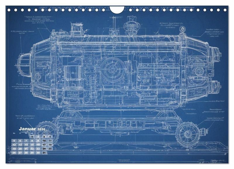 Tauchen Sie ein in die faszinierende Welt der Steampunk-Innovationen mit unserem einzigartigen KI generierten Blaupausen-Kalender! Jeder Monat präsentiert detaillierte Pläne und technische Zeichnungen von fantastischen Maschinen.