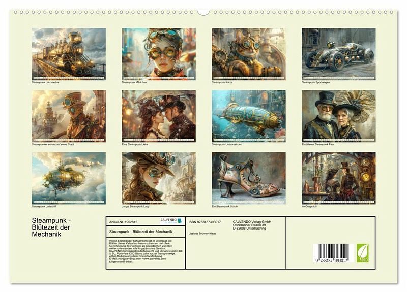PREMIUM-LINIE - Brillanter Fotokalender mit 12 wunderschönen Motiven, Kunstdruck in Hochglanz in Museumsqualität.QUALITÄT - edle Materialien, stabile Rückwand mit 2 innovativen Einstecktaschen für eine optimale Präsentation an der Wand.NACHHALTIG - deutliche Abfallreduzierung durch bedarfsgerechte Einzelstückfertigung, umweltfreundliches FSC-zertifiziertes Papier, Produktion in Deutschland, klimabewusste Logistik.PERFEKTES GESCHENK - Kalender für Freunde und Familie, für Kinder und Erwachsene, jung und alt, zu Weihnachten, Geburtstag oder zwischendurch.Steampunk mit Elementen der Viktorianischen Ära von Autor(in): Liselotte Brunner-Klaus