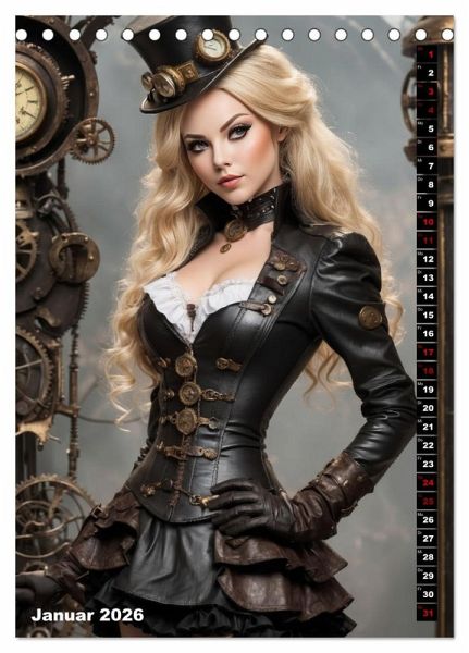 Erleben Sie mit dem 'Steampunk Divas im Lederlook'-Kalender eine faszinierende Fusion aus viktorianischer Eleganz und Steampunk-Ästhetik, geschaffen von künstlicher Intelligenz. Jeder Monat präsentiert kühne und selbstbewusste Diva in kunstvoll gestalteten Ledermode-Outfit. Diese einzigartigen Entdeckerinnen, vereinen Tradition und Innovation auf beeindruckende Weise. Lassen Sie sich von der Synthese aus Vintage und futuristischer Eleganz begeistern, während diese Steampunk-Divas das Jahr auf einzigartige Weise begleiten.