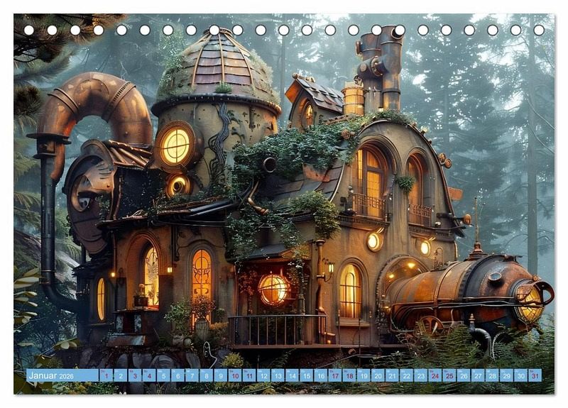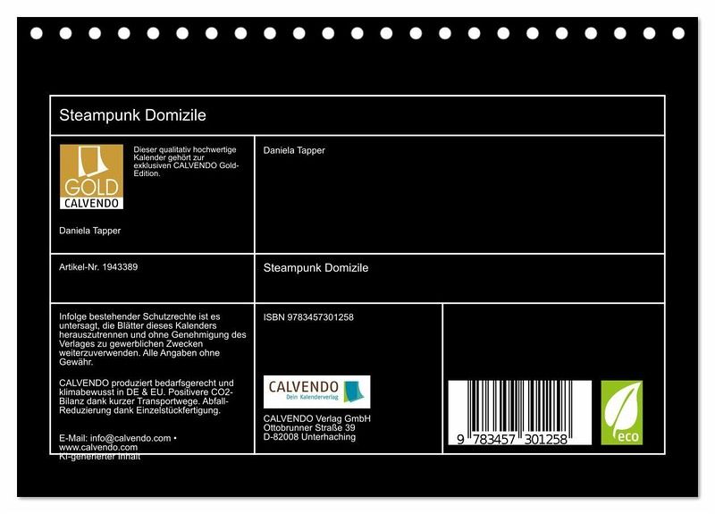 Dieser Kalender bringt die viktorianische Ära in Ihr Zuhause, aber mit einer Prise futuristischer Würze! Jeden Monat öffnet sich, dank einer KI, ein neues Portal in eine phantastische Vergangenheit, die niemals war, aber sicherlich hätte sein können. Stellen Sie sich vor, Sie trinken Ihren Morgenkaffee, während Sie von den kupfergetriebenen Türmen und den mit Messing verzierten Fassaden der Steampunk Domizile inspiriert werden, die so komplex sind, dass Sie fast den Dampf riechen und das Zischen der Maschinen hören können. Dieser Kalender ist nicht nur ein Zeitmesser, sondern ein täglicher Fluchtweg in eine Welt, in der die Zukunft auf die Romantik der industriellen Revolution trifft! Dieser qualitativ hochwertige Kalender gehört zur exklusiven CALVENDO Gold-Edition.