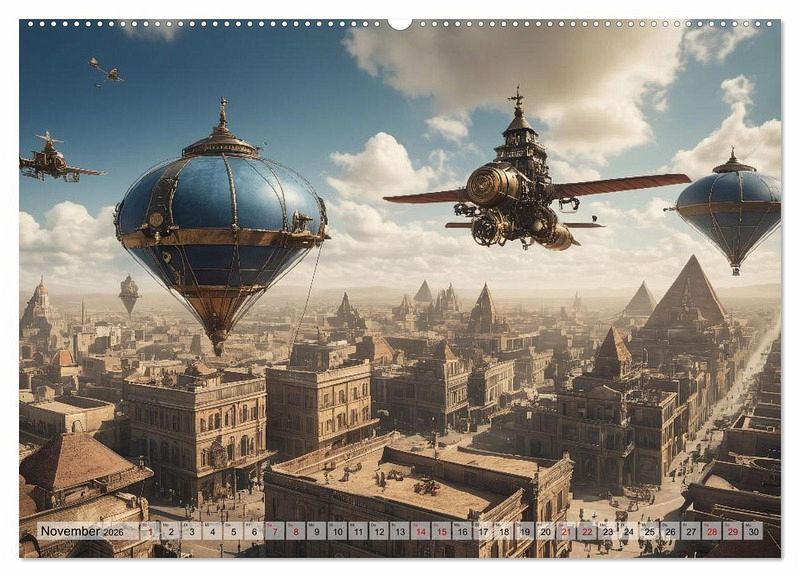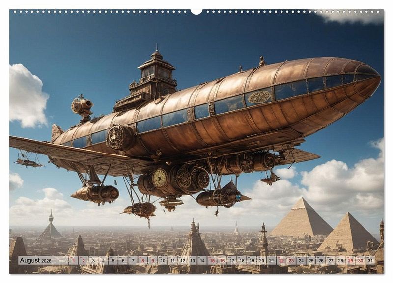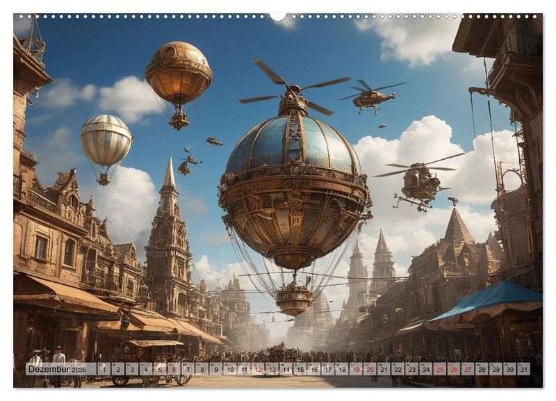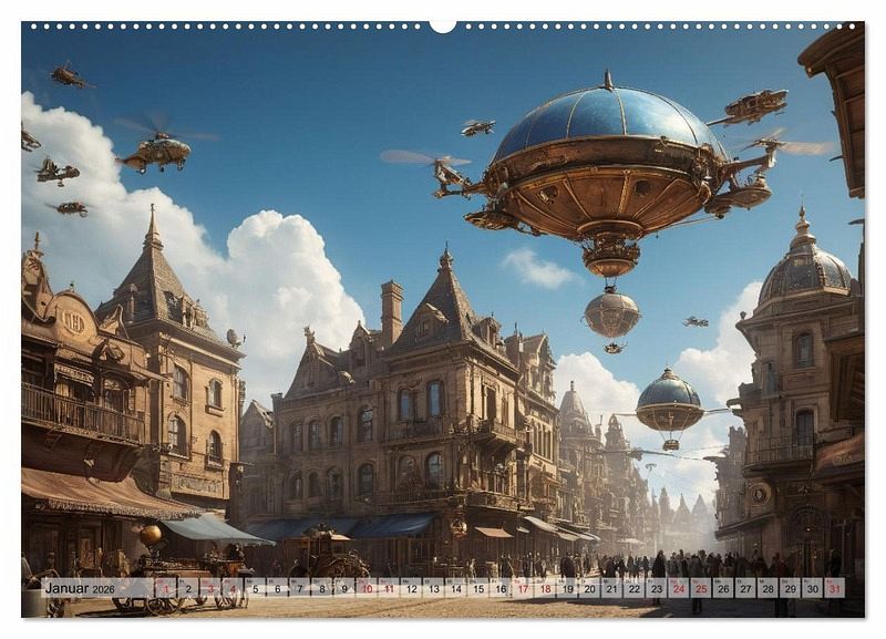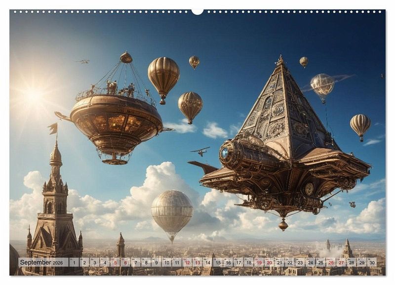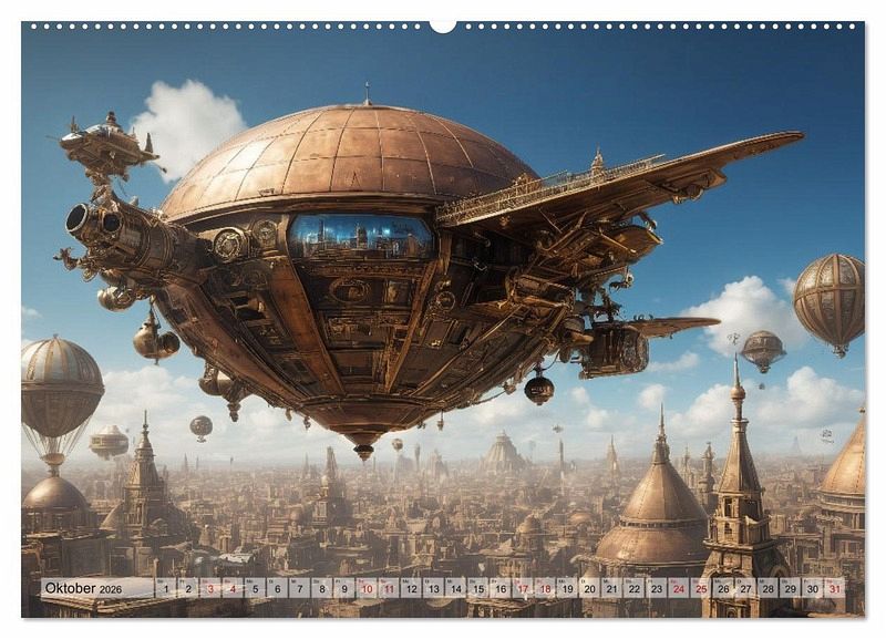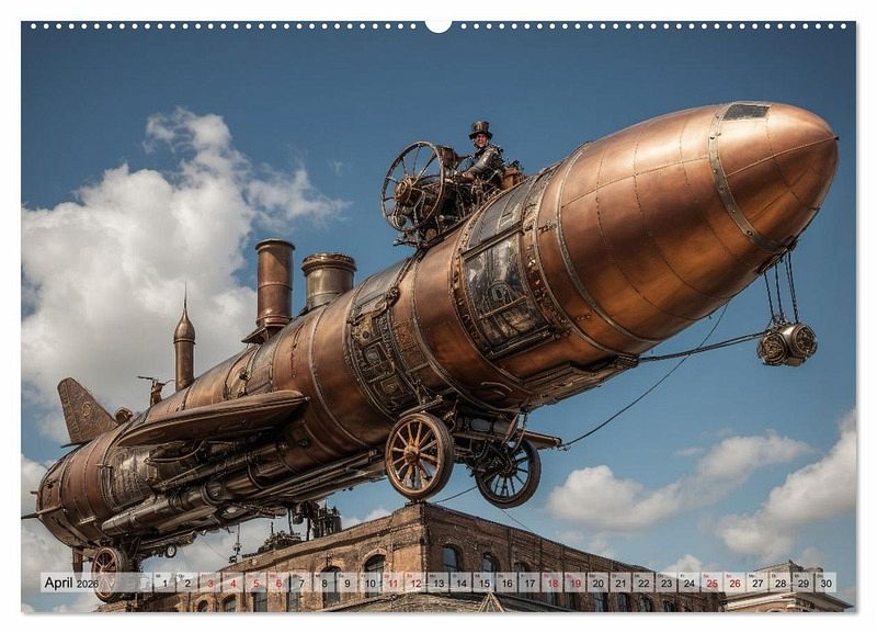 Entdecken Sie eine Welt voller fantastischer Flugobjekte mit unserem Steampunk-Kalender. Tauchen Sie ein in eine Ära, in der Träume die Lüfte beherrschten, und erleben Sie die kühne Fusion von Vergangenheit und Zukunft. Jeder Monat präsentiert ein einzigartiges Flugobjekt im atemberaubenden Steampunk-Stil - von majestätischen Luftschiffen bis hin zu eleganten Flugmaschinen. Bewundern Sie die kunstvolle Verschmelzung von Dampftechnologie und ästhetischer Raffinesse, die diese Flugobjekte charakterisiert. Dieser Kalender ist mehr als nur eine Sammlung von Illustrationen - er ist eine Reise durch die grenzenlose Fantasie des Steampunk. Lassen Sie sich von den detailreichen Darstellungen und der nostalgischen Zukunftsvision inspirieren.