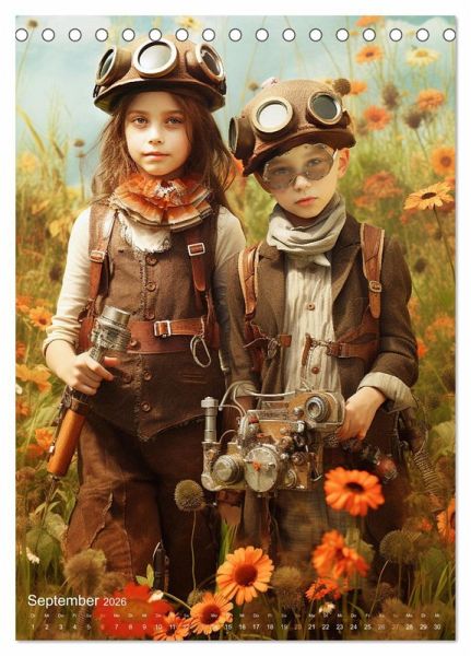 Steampunk fällt in den Bereich des sogenannten Retro-Futurismus, also einer Vorstellung der Zukunft aus der Perspektive früherer Zeiten. Mithilfe von KI hat die Autorin Bilder erschaffen, die Kinder in einer futuristisch anmutenden Welt zeigen.