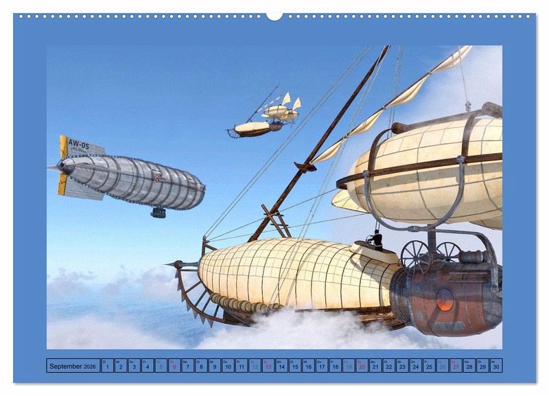 Steampunk und Luftschiffe gehören schlicht zusammen. Bestaunen sie hier gleich ein Dutzend dieser traumhaften Fahrzeuge die sie durchs ganze Jahr begleiten. Eine wahre Freude nicht nur für Fans des Steampunk.