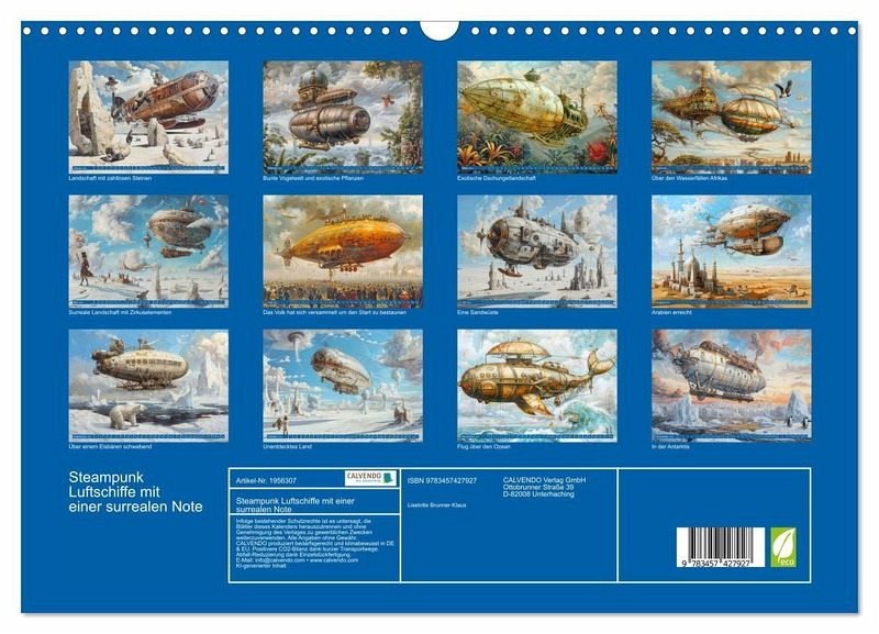 QUALITÄT - Hochwertiger Fotokalender mit 12 wunderschönen Motiven auf lichtbeständigem Bilderdruckpapier, robuste Spiralbindung mit Aufhängebügel.NACHHALTIG - deutliche Abfallreduzierung durch bedarfsgerechte Einzelstückfertigung, umweltfreundliches FSC-zertifiziertes Papier, Produktion in Deutschland, klimabewusste Logistik.PERFEKTES GESCHENK - Kalender für Freunde und Familie, für Kinder und Erwachsene, jung und alt, zu Weihnachten, Geburtstag oder zwischendurch.VIELFALT - Bildkalender in verschiedenen Formaten, z.B. DIN A5, DIN A4, DIN A3 sowie DIN A2. Ob Naturmotiv, Gemälde oder Fotos, ideal für ein persönliches Wohlfühlambiente.Außergewöhnlichen Steampunk Fluggeräte von Autor(in): Liselotte Brunner-Klaus
