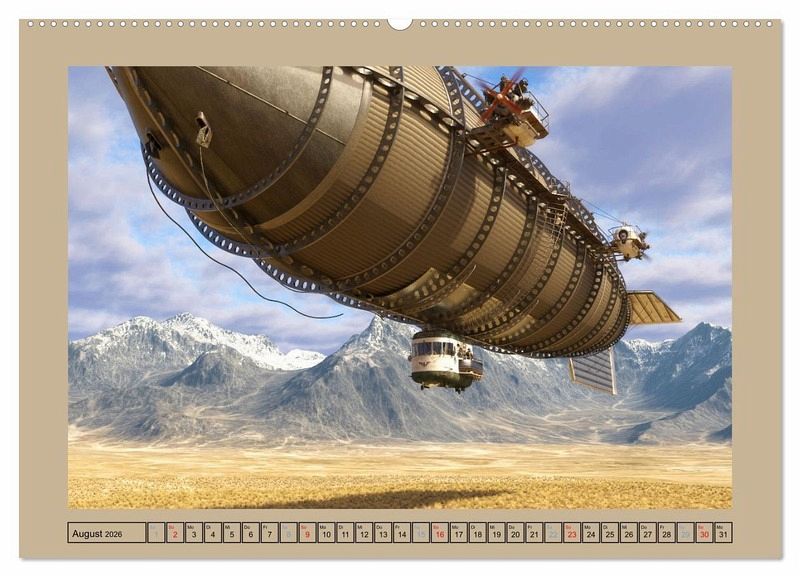 Steampunk und Luftschiffe gehören schlicht zusammen. Bestaunen sie hier gleich ein Dutzend dieser traumhaften Fahrzeuge die sie durchs ganze Jahr begleiten. Eine wahre Freude nicht nur für Fans des Steampunk.