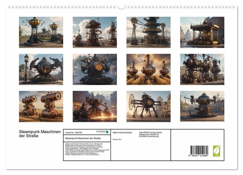 Tauchen Sie ein in eine Welt voller Wunder und Erfindungen aus vergangenen Zeiten und futuristischer Technologie! Unser Steampunk-Maschinenkalender entführt Sie auf eine faszinierende Reise durch die Fantasie, wo dampfbetriebene Apparaturen und mechanische Wunderwerke die Hauptrolle spielen. Jeder Monat präsentiert ein einzigartiges Meisterwerk der Ingenieurskunst, das sowohl die Nostalgiker als auch die Liebhaber der Zukunft begeistern wird. Lassen Sie sich von der Ästhetik vergangener Epochen und der grenzenlosen Vorstellungskraft der Zukunft inspirieren. Sichern Sie sich jetzt Ihren Kalender und lassen Sie sich von der Magie des Steampunk verzaubern!