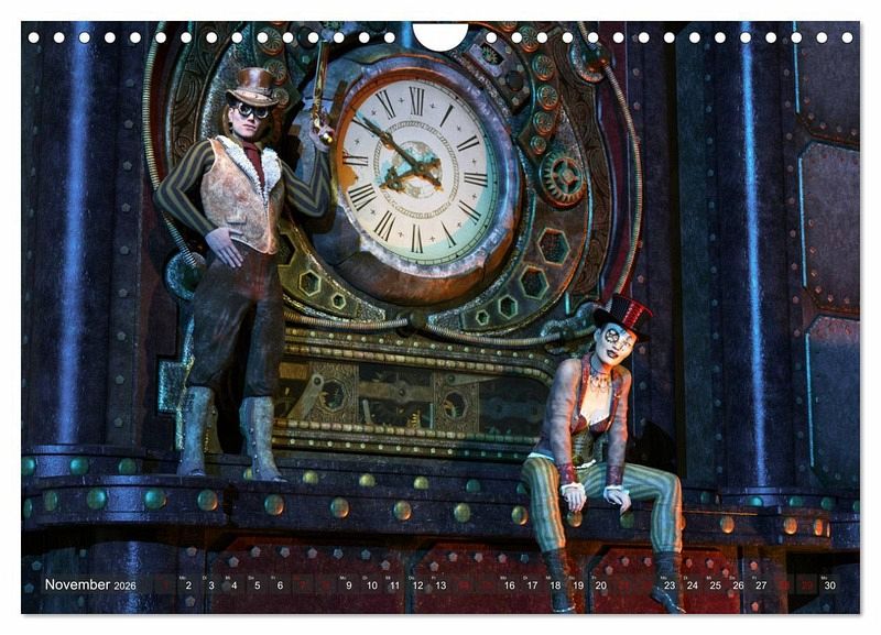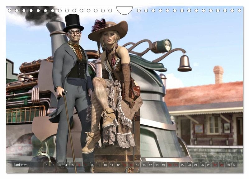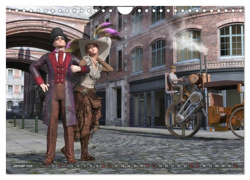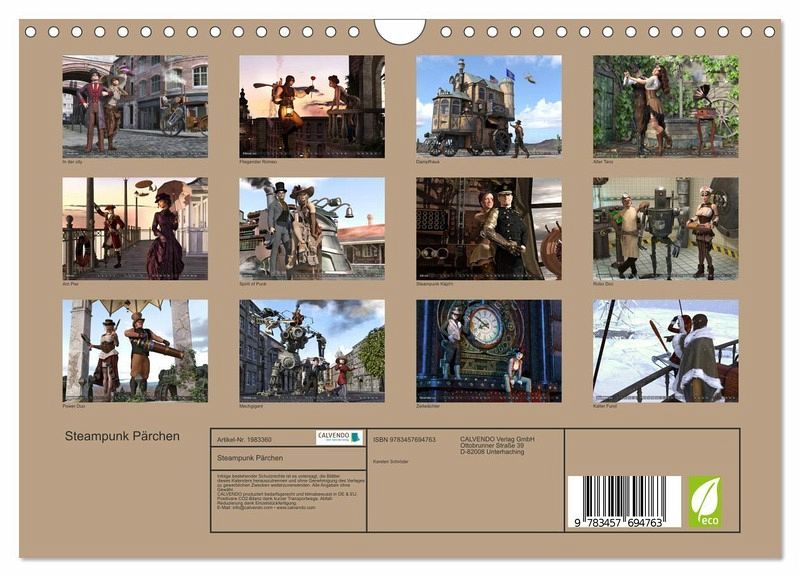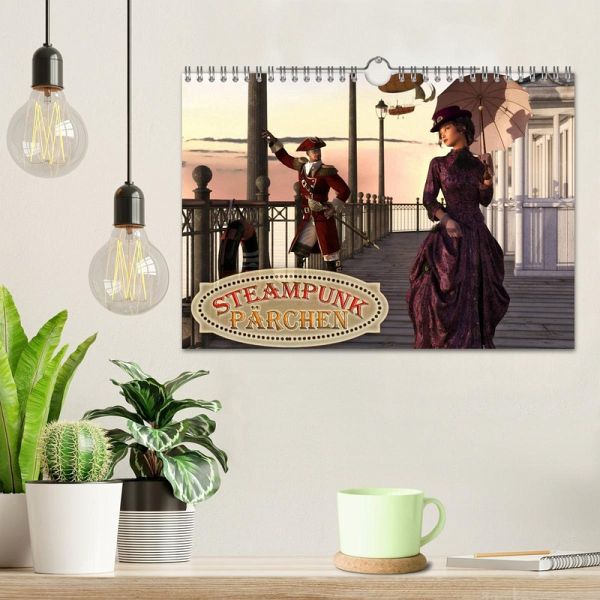 12 wundervolle Bilder mit Pärchen in verträumten Steampunkwelten werden sie das ganze Jahr in eine fremde, verträumte Welt entführen.