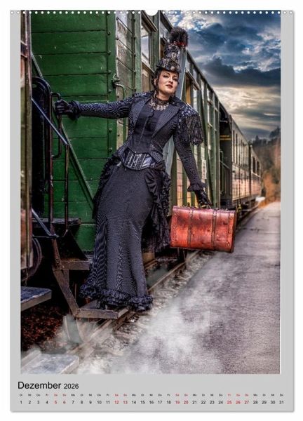 Tauchen Sie ein in eine Welt, in der Eleganz auf Eisen trifft und Mode Geschichten erzählt. Unser exklusiver Kalender präsentiert zwölf kunstvoll inszenierte Fotografien, die den Zauber vergangener Epochen mit einem Hauch von Steampunk vereinen. Jeder Monat entführt Sie auf eine visuelle Reise - von dramatischen Sonnenuntergängen über nostalgische Bahnsteige bis hin zu detailverliebten Kostümen, die Geschichte und Fantasie verschmelzen lassen.