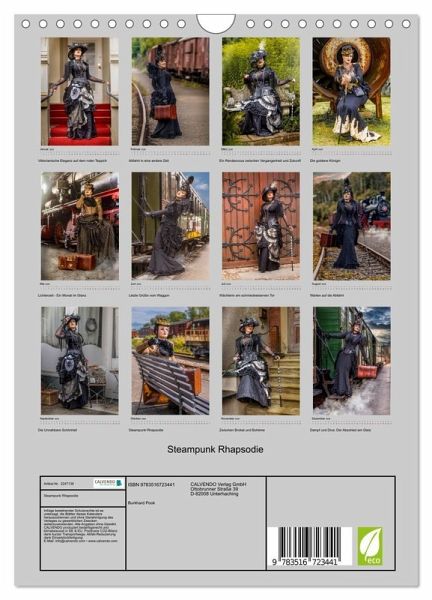 QUALITÄT - Hochwertiger Fotokalender mit 12 wunderschönen Motiven auf lichtbeständigem Bilderdruckpapier, robuste Spiralbindung mit Aufhängebügel.NACHHALTIG - deutliche Abfallreduzierung durch bedarfsgerechte Einzelstückfertigung, umweltfreundliches FSC-zertifiziertes Papier, Produktion in Deutschland, klimabewusste Logistik.PERFEKTES GESCHENK - Kalender für Freunde und Familie, für Kinder und Erwachsene, jung und alt, zu Weihnachten, Geburtstag oder zwischendurch.VIELFALT - Bildkalender in verschiedenen Formaten, z.B. DIN A5, DIN A4, DIN A3 sowie DIN A2. Ob Naturmotiv, Gemälde oder Fotos, ideal für ein persönliches Wohlfühlambiente.Steampunk trifft Fotokunst: Ein Kalender voller Fantasie und Eleganz. Dieser außergewöhnliche Kalender präsentiert zwölf kunstvoll inszenierte Fotografien im Steampunk-Stil - mit viktorianischer Mode, nostalgischen Kulis von Autor(in): Burkhard Pook