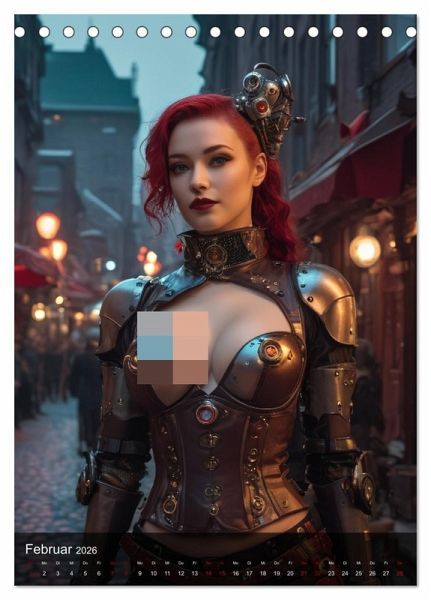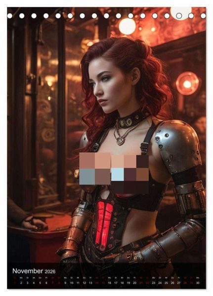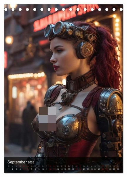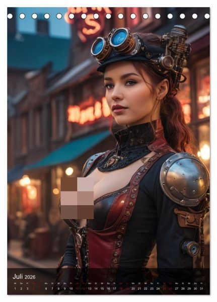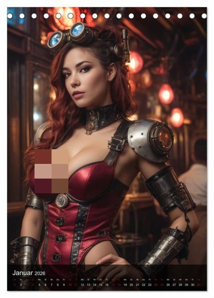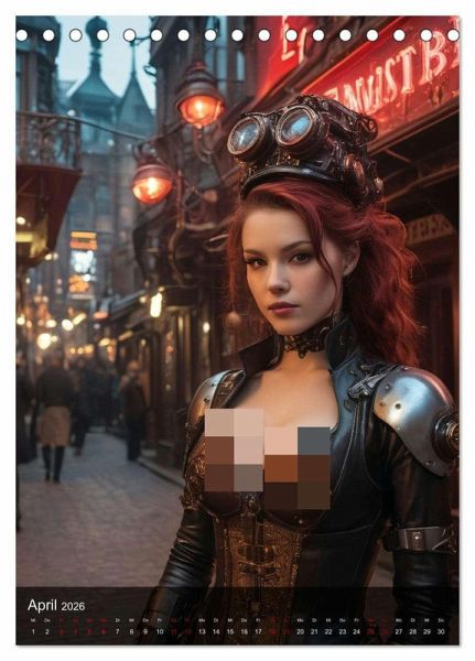 Tauchen Sie ein in das geheimnisvolle Rotlichtviertel der Steampunk-Ära! Unser einzigartiger Kalender enthüllt eine Welt, in der sinnliche Schönheiten im Steampunk-Stil die Straßen durchstreifen. Jeder Monat präsentiert kunstvolle Illustrationen leicht bekleideter Damen, deren Eleganz und Anmut von dampfbetriebenen Maschinen und viktorianischer Raffinesse umgeben sind. Diese Kombination aus Nostalgie und futuristischem Flair wird Ihre Fantasie beflügeln und Sie in eine Welt der Phantasie entführen. Lassen Sie sich von den detailreichen Szenen verzaubern, die das Rotlichtviertel in einem ganz neuen Licht erscheinen lassen. Erleben Sie die künstlerische Interpretation eines vergangenen Zeitalters, in dem Sinnlichkeit und Technologie auf faszinierende Weise verschmelzen.