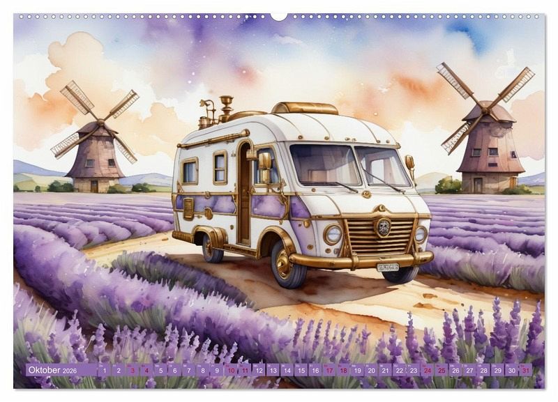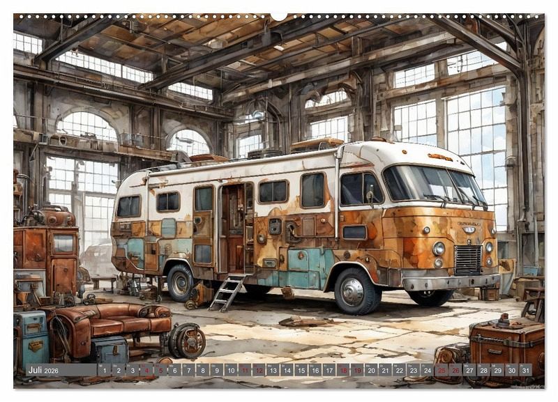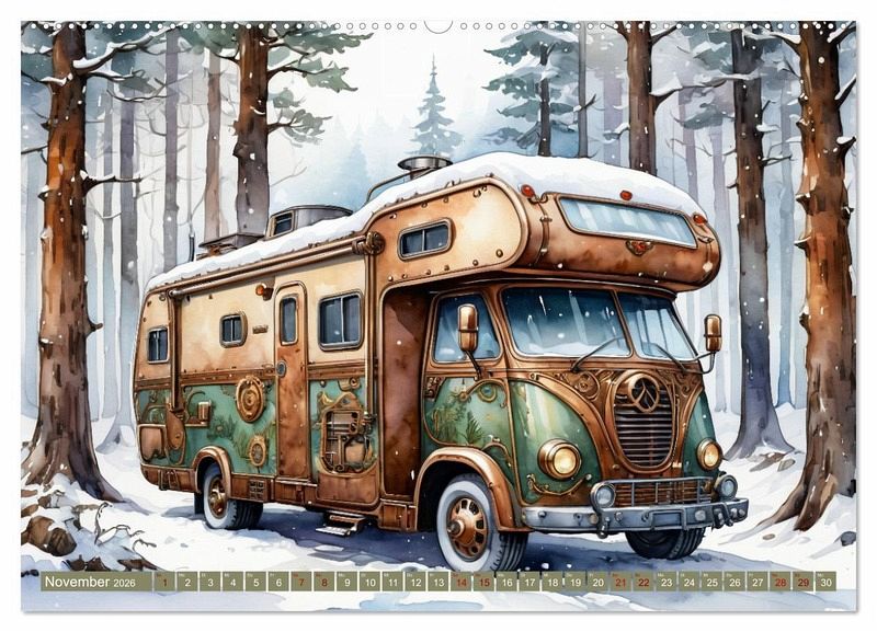 Tauchen Sie ein in die faszinierende Welt von Steampunk und Camping mit dem einzigartigen KI Kalender "Steampunk Wohnmobile - Ein Jahr voller Abenteuer ". Dieser Wohnmobil Kalender bringt Ihnen die atemberaubende Kombination aus Steampunk Charme, industrieller Ästhetik und moderner Abenteuerlust direkt nach Hause. Lassen Sie sich Monat für Monat von beeindruckenden Wohnmobilen inspirieren, die mit außergewöhnlichen Steampunk-Elementen gestaltet sind.