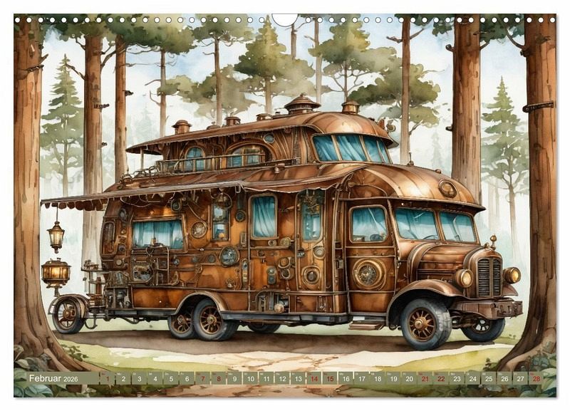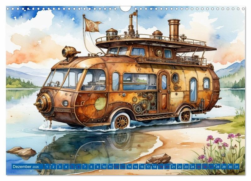 Tauchen Sie ein in die faszinierende Welt von Steampunk und Camping mit dem einzigartigen KI Kalender "Steampunk Wohnmobile - Ein Jahr voller Abenteuer ". Dieser Wohnmobil Kalender bringt Ihnen die atemberaubende Kombination aus Steampunk Charme, industrieller Ästhetik und moderner Abenteuerlust direkt nach Hause. Lassen Sie sich Monat für Monat von beeindruckenden Wohnmobilen inspirieren, die mit außergewöhnlichen Steampunk-Elementen gestaltet sind.