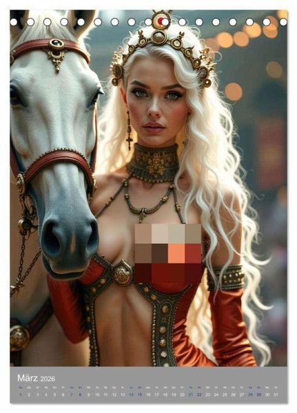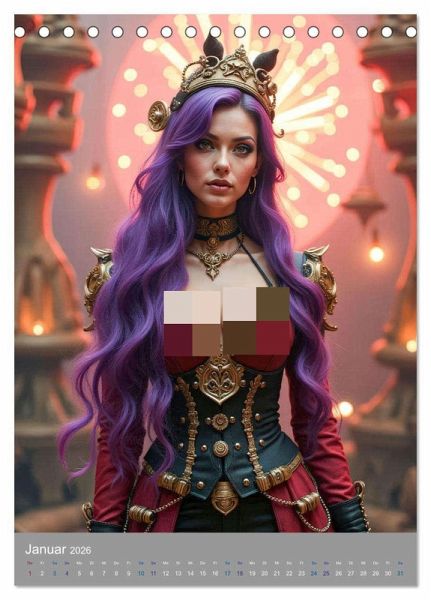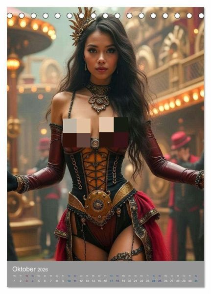 Jedes Kalenderblatt präsentiert eine einzigartige Schönheit, die mit ihrem extravaganten Outfit und faszinierenden Accessoires die Essenz des Steampunk-Zirkus einfängt. Perfekt für Liebhaber von außergewöhnlicher Kunst und Fans der Steampunk-Ästhetik.
