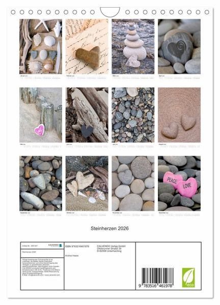 QUALITÄT - Hochwertiger Fotokalender mit 12 wunderschönen Motiven auf lichtbeständigem Bilderdruckpapier, robuste Spiralbindung mit Aufhängebügel.NACHHALTIG - deutliche Abfallreduzierung durch bedarfsgerechte Einzelstückfertigung, umweltfreundliches FSC-zertifiziertes Papier, Produktion in Deutschland, klimabewusste Logistik.PERFEKTES GESCHENK - Kalender für Freunde und Familie, für Kinder und Erwachsene, jung und alt, zu Weihnachten, Geburtstag oder zwischendurch.VIELFALT - Bildkalender in verschiedenen Formaten, z.B. DIN A5, DIN A4, DIN A3 sowie DIN A2. Ob Naturmotiv, Gemälde oder Fotos, ideal für ein persönliches Wohlfühlambiente.Herzen aus Stein, Symbol für Glück und Liebe von Autor(in): Andrea Haase