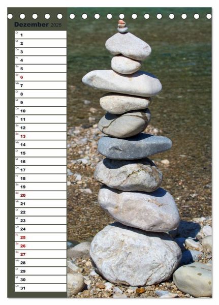 Auf der ganzen Welt kann man die hübsch anzusehenden Steinmännchen finden. In den Bergen dienen sie häufig zur Wegmarkierung, aber auch am Wasser oder an besonders schönen Orten legen die Menschen Steine aufeinander. Dieser Kalender zeigt 12 zauberhafte Steinmännchen jeder Größe an Fluss, See und Meer, welche die Verbundenheit und Dankbarkeit der Menschen zur Natur zum Ausdruck bringen.