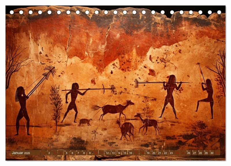 Ein Kalender mit Motiven inspiriert von den Höhlen von Lascaux zeichnet sich durch seine faszinierende Verbindung zwischen prähistorischer Kunst und moderner Gestaltung aus. Dieser Kalender entführt den Betrachter auf eine Reise in die mystische Welt der Höhlenmalereien von Lascaux und vermittelt die Schönheit und Bedeutung dieser uralten Kunstwerke.