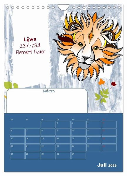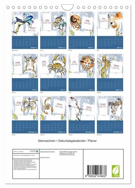 QUALITÄT - Hochwertiger Fotokalender mit 12 wunderschönen Motiven auf lichtbeständigem Bilderdruckpapier, robuste Spiralbindung mit Aufhängebügel.NACHHALTIG - deutliche Abfallreduzierung durch bedarfsgerechte Einzelstückfertigung, umweltfreundliches FSC-zertifiziertes Papier, Produktion in Deutschland, klimabewusste Logistik.PERFEKTES GESCHENK - Kalender für Freunde und Familie, für Kinder und Erwachsene, jung und alt, zu Weihnachten, Geburtstag oder zwischendurch.VIELFALT - Bildkalender in verschiedenen Formaten, z.B. DIN A5, DIN A4, DIN A3 sowie DIN A2. Ob Naturmotiv, Gemälde oder Fotos, ideal für ein persönliches Wohlfühlambiente.Der Sternzeichen-Geburtstagskalender mit Platz für kleine Notizen! von Autor(in): Elisabeth Stanzer