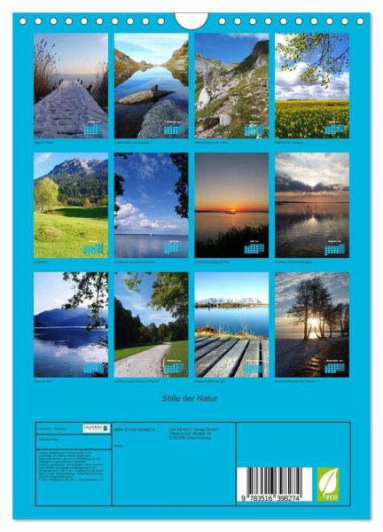 QUALITÄT - Hochwertiger Fotokalender mit 12 wunderschönen Motiven auf lichtbeständigem Bilderdruckpapier, robuste Spiralbindung mit Aufhängebügel.NACHHALTIG - deutliche Abfallreduzierung durch bedarfsgerechte Einzelstückfertigung, umweltfreundliches FSC-zertifiziertes Papier, Produktion in Deutschland, klimabewusste Logistik.PERFEKTES GESCHENK - Kalender für Freunde und Familie, für Kinder und Erwachsene, jung und alt, zu Weihnachten, Geburtstag oder zwischendurch.VIELFALT - Bildkalender in verschiedenen Formaten, z.B. DIN A5, DIN A4, DIN A3 sowie DIN A2. Ob Naturmotiv, Gemälde oder Fotos, ideal für ein persönliches Wohlfühlambiente.Momente der Ruhe von Autor(in): Fofino
