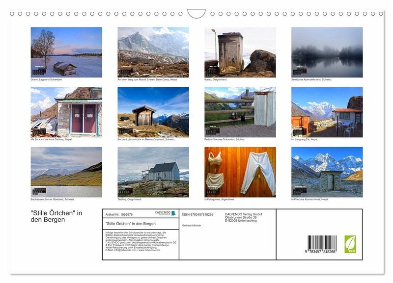 QUALITÄT - Hochwertiger Fotokalender mit 12 wunderschönen Motiven auf lichtbeständigem Bilderdruckpapier, robuste Spiralbindung mit Aufhängebügel.NACHHALTIG - deutliche Abfallreduzierung durch bedarfsgerechte Einzelstückfertigung, umweltfreundliches FSC-zertifiziertes Papier, Produktion in Deutschland, klimabewusste Logistik.PERFEKTES GESCHENK - Kalender für Freunde und Familie, für Kinder und Erwachsene, jung und alt, zu Weihnachten, Geburtstag oder zwischendurch.VIELFALT - Bildkalender in verschiedenen Formaten, z.B. DIN A5, DIN A4, DIN A3 sowie DIN A2. Ob Naturmotiv, Gemälde oder Fotos, ideal für ein persönliches Wohlfühlambiente.Vom Plumpsklo bis zum modernen Klohäuschen, öffentliche Toiletten der Welt von Autor(in): Gerhard Albicker