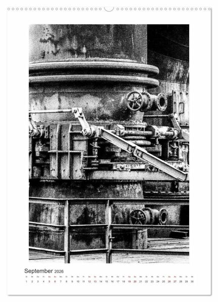 Ein Kalender aus der Signatur Analog Edition. Einst prägten Stahl und Kohle das Ruhrgebiet - heute liegt zum größten Teil Stille über den Industrieanlagen von einst. Diese 12 analogen s/w Fotografien sind eine Hommage an den Ruhrpott, Herz und Motor eines Wirtschaftswunders. Eine einmalige Auswahl aus der Reihe The Silence of Industry aus dem Jahr 2005, die im Landschaftspark Duisburg Nord und in der Zeche Zollern aufgenommen wurde.