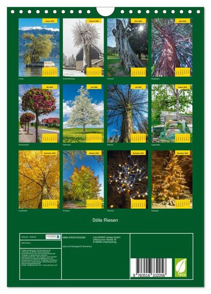 QUALITÄT - Hochwertiger Fotokalender mit 12 wunderschönen Motiven auf lichtbeständigem Bilderdruckpapier, robuste Spiralbindung mit Aufhängebügel.NACHHALTIG - deutliche Abfallreduzierung durch bedarfsgerechte Einzelstückfertigung, umweltfreundliches FSC-zertifiziertes Papier, Produktion in Deutschland, klimabewusste Logistik.PERFEKTES GESCHENK - Kalender für Freunde und Familie, für Kinder und Erwachsene, jung und alt, zu Weihnachten, Geburtstag oder zwischendurch.VIELFALT - Bildkalender in verschiedenen Formaten, z.B. DIN A5, DIN A4, DIN A3 sowie DIN A2. Ob Naturmotiv, Gemälde oder Fotos, ideal für ein persönliches Wohlfühlambiente.Bäume - still in ihrem Wachstum, riesig in ihrer Wirkung von Autor(in): Giuseppe Di Domenico