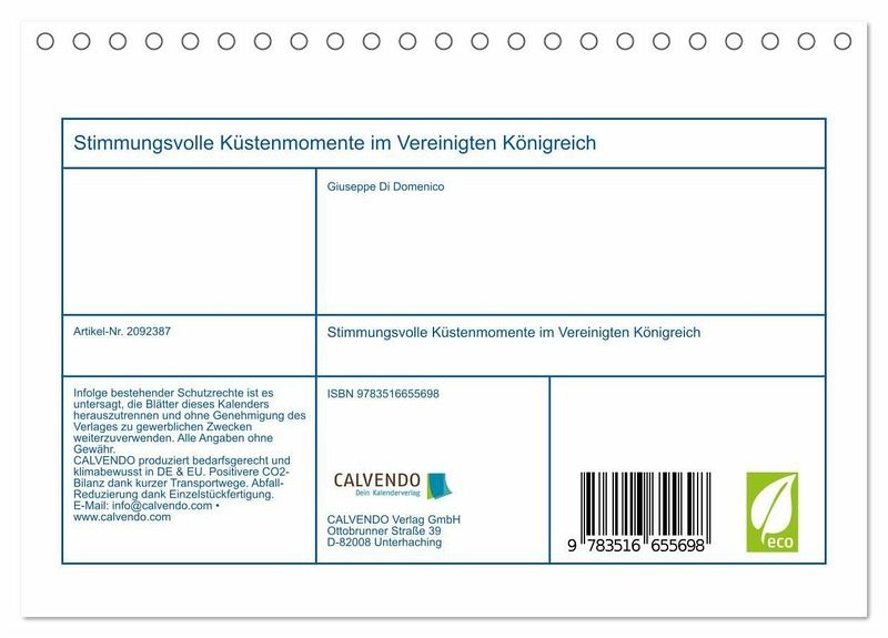 QUALITÄT - Hochwertiger Fotokalender mit 12 wunderschönen Motiven auf lichtbeständigem Bilderdruckpapier, robuste Spiralbindung.NACHHALTIG - deutliche Abfallreduzierung durch bedarfsgerechte Einzelstückfertigung, umweltfreundliches FSC-zertifiziertes Papier, Produktion in Deutschland, klimabewusste Logistik.PERFEKTES GESCHENK - Kalender für Freunde und Familie, für Kinder und Erwachsene, jung und alt, zu Weihnachten, Geburtstag oder zwischendurch.VIELFALT - Bildkalender in verschiedenen Formaten, z.B. DIN A5, DIN A4, DIN A3 sowie DIN A2. Ob Naturmotiv, Gemälde oder Fotos, ideal für ein persönliches Wohlfühlambiente.Unterwegs an den Küsten Großbritanniens von Autor(in): Giuseppe Di Domenico