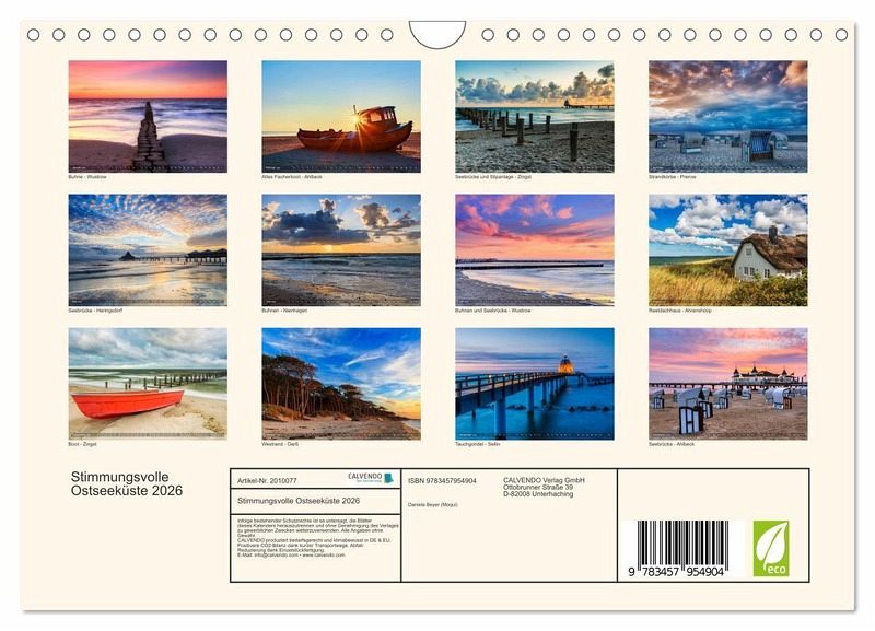 Lassen Sie sich 1 Jahr lang von beeindruckenden und stimmungsvollen Bildern der deutschen Ostseeküste begleiten. Dieser Kalender führt Sie an die vom Licht verzauberte und vom Wind geformte Ostseeküste in Mecklenburg-Vorpommern. Genießen Sie die verschiedenen Stimmungen von Sonnenaufgang bis nach Sonnenuntergang hinein in die blaue Stunde.