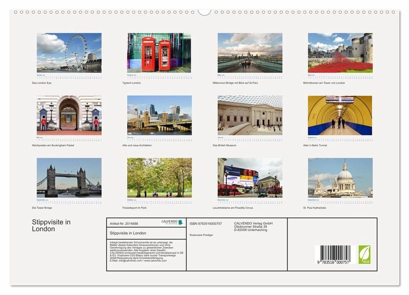 PREMIUM-LINIE - Brillanter Fotokalender mit 12 wunderschönen Motiven, Kunstdruck in Hochglanz in Museumsqualität.QUALITÄT - edle Materialien, stabile Rückwand mit 2 innovativen Einstecktaschen für eine optimale Präsentation an der Wand.NACHHALTIG - deutliche Abfallreduzierung durch bedarfsgerechte Einzelstückfertigung, umweltfreundliches FSC-zertifiziertes Papier, Produktion in Deutschland, klimabewusste Logistik.PERFEKTES GESCHENK - Kalender für Freunde und Familie, für Kinder und Erwachsene, jung und alt, zu Weihnachten, Geburtstag oder zwischendurch.Stippvisite in London mit markanten Sehenswürdigkeiten von Autor(in): Rosemarie Prediger