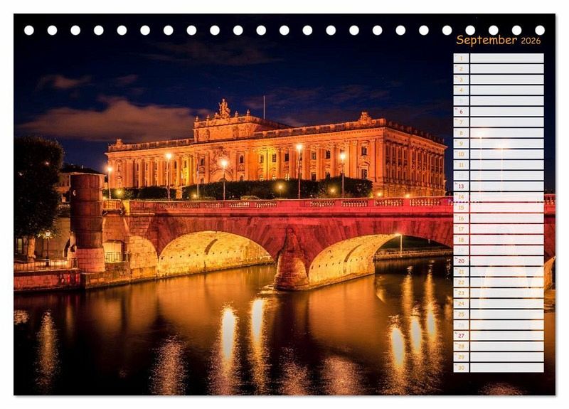September: Nachts vor der Norrbro Brücke und Regierungsgebäude