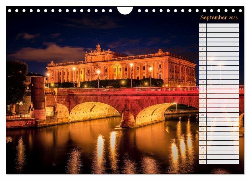September: Nachts vor der Norrbro Brücke und Regierungsgebäude