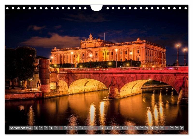 September: Nachts vor der Norrbro Brücke und Regierungsgebäude