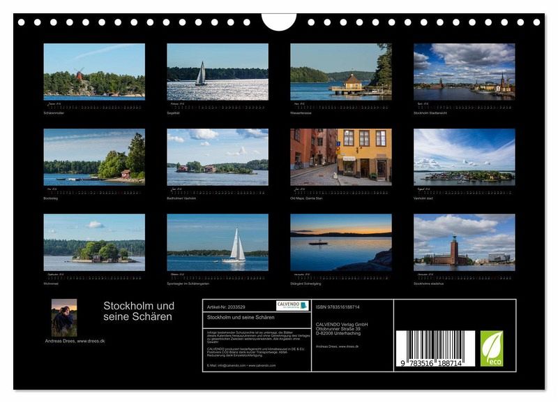 QUALITÄT - Hochwertiger Fotokalender mit 12 wunderschönen Motiven auf lichtbeständigem Bilderdruckpapier, robuste Spiralbindung mit Aufhängebügel.NACHHALTIG - deutliche Abfallreduzierung durch bedarfsgerechte Einzelstückfertigung, umweltfreundliches FSC-zertifiziertes Papier, Produktion in Deutschland, klimabewusste Logistik.PERFEKTES GESCHENK - Kalender für Freunde und Familie, für Kinder und Erwachsene, jung und alt, zu Weihnachten, Geburtstag oder zwischendurch.VIELFALT - Bildkalender in verschiedenen Formaten, z.B. DIN A5, DIN A4,DIN A3 sowie DIN A2. Ob Naturmotiv, Gemälde oder Fotos, ideal für ein persönliches Wohlfühlambiente.Reise in die wunderbare Welt des Stockholmer Schärengarten von Autor(in): http://www.drees.dk