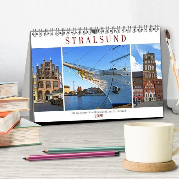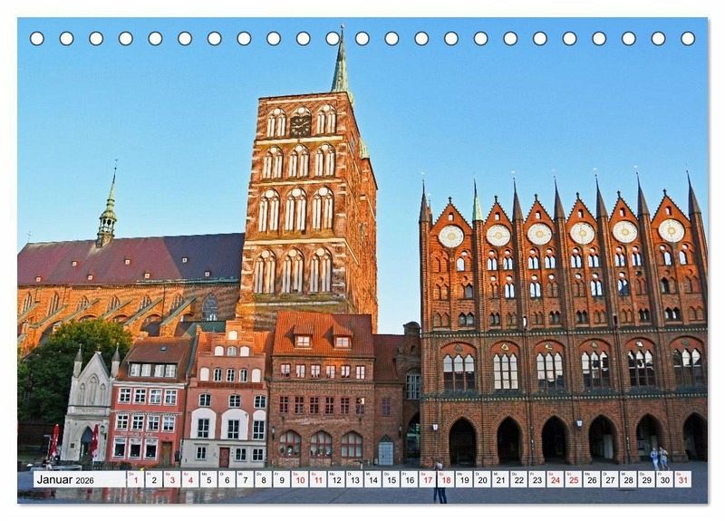 Stralsund wird aufgrund seiner Lage am Strelasund, der Meerenge zwischen dem Festland und der Insel Rügen, auch als Tor zu dieser größten deutschen Insel bezeichnet. Die nach der Wende wunderschön restaurierte Altstadt ist als Weltkulturerbe anerkannt. Darüber hinaus prägen mittelalterliche Kirchen, ein einzigartiges Rathaus, aber auch das berühmte Ozeaneum, ein Meeresmuseum der Superlative, sowie die erste, 1933 erbaute "Gorch Fock", die Stadt. Lassen Sie sich von den außergewöhnlichen Fotos des Kalenders über Stralsunds Sehenswürdigkeiten inspirieren.