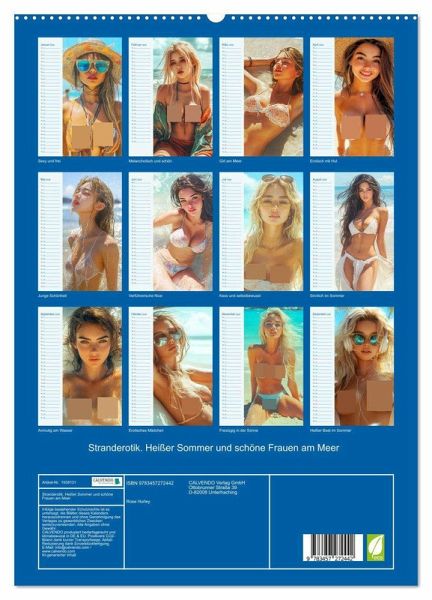 Dieser Kalender fängt die Schönheit und Ausstrahlung selbstbewusster Frauen in sommerlichen Szenerien ein. Alle Bilder wurden mit Hilfe von KI erstellt und zeigen freizügige Girls in der Sonne, am Wasser und umgeben von sommerlicher Leichtigkeit. Mit sinnlicher Erotik verkörpern sie die Wärme und Leidenschaft des Sommers. Eine Hommage an verführerische Weiblichkeit in der heißen Jahreszeit.