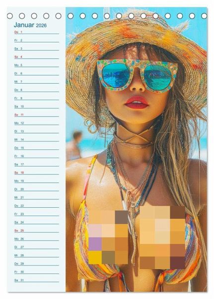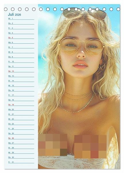 Dieser Kalender fängt die Schönheit und Ausstrahlung selbstbewusster Frauen in sommerlichen Szenerien ein. Alle Bilder wurden mit Hilfe von KI erstellt und zeigen freizügige Girls in der Sonne, am Wasser und umgeben von sommerlicher Leichtigkeit. Mit sinnlicher Erotik verkörpern sie die Wärme und Leidenschaft des Sommers. Eine Hommage an verführerische Weiblichkeit in der heißen Jahreszeit.