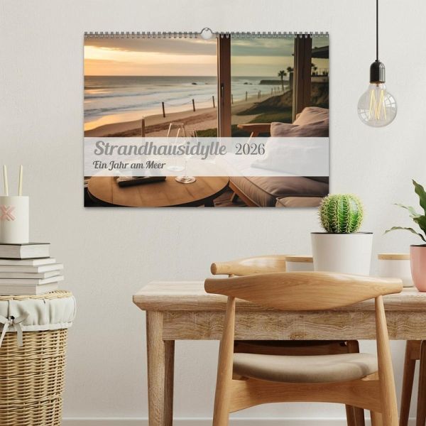 Entdecken Sie die zeitlose Schönheit der Küstenlebensart zu allen Jahreszeiten. Tauchen Sie ein in die warme Gemütlichkeit der Strandhaus-Wohnräume. Jeder Monat präsentiert Ihnen eine neue Facette des Küstenlebens, eingefangen in traumhaften Bildern von gemütlich eingerichteten Strandhäusern, die den perfekten Rückzugsort für Sonnenanbeter und Meeresliebhaber darstellen.Von den sonnendurchfluteten Wohnzimmern im Sommer bis zu den knisternden Kaminen und weichen Decken im Winter, diese Bilder fangen die zauberhafte Atmosphäre der Strandhaus-Lebensweise perfekt ein. Erleben Sie den Wandel der Jahreszeiten und wie sich die Küstenlandschaft in ein harmonisches Zusammenspiel mit der Einrichtung verwandelt.Holzkohlegrillen am Strand im Sommer, stimmungsvolle Abende am Kamin im Herbst, Frühlingsspaziergänge entlang der Küste und winterliche Ruhe - dieser Kalender erinnert Sie daran, dass das Leben am Meer zu jeder Jahreszeit etwas Besonderes ist.Verschönern Sie Ihre Wände und träumen Sie sich an die Küste, wann immer Sie möchten. Machen Sie sich bereit für ein ganzjähriges Stranderlebnis, das Ihre Sinne beleben wird. Willkommen in Ihrem persönlichen Strandparadies!Alle Bilder wurden mit künstlicher Intelligenz erstellt.