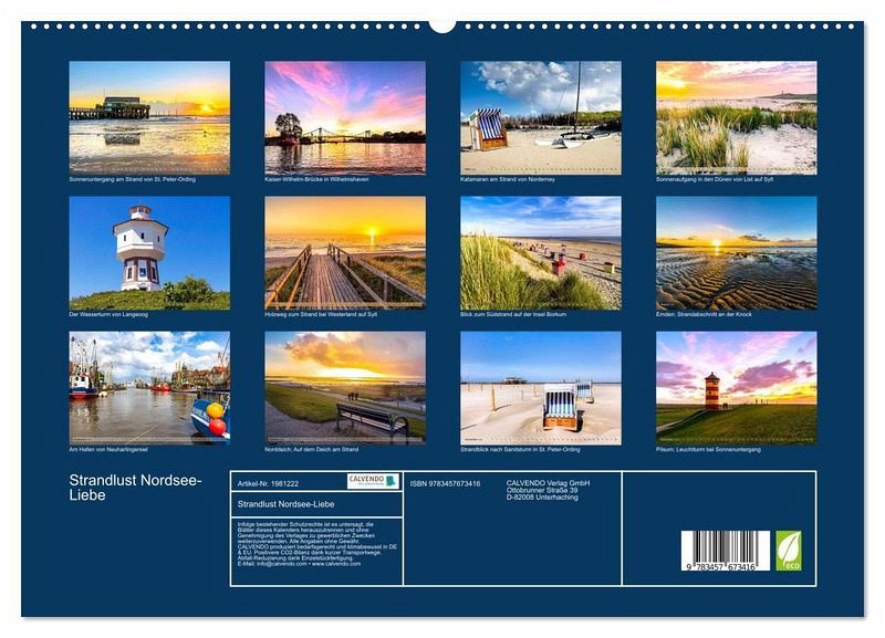 PREMIUM-LINIE - Brillanter Fotokalender mit 12 wunderschönen Motiven, Kunstdruck in Hochglanz in Museumsqualität.QUALITÄT - edle Materialien, stabile Rückwand mit 2 innovativen Einstecktaschen für eine optimale Präsentation an der Wand.NACHHALTIG - deutliche Abfallreduzierung durch bedarfsgerechte Einzelstückfertigung, umweltfreundliches FSC-zertifiziertes Papier, Produktion in Deutschland, klimabewusste Logistik.PERFEKTES GESCHENK - Kalender für Freunde und Familie, für Kinder und Erwachsene, jung und alt, zu Weihnachten, Geburtstag oder zwischendurch.Bezaubernde Highlights der Nordsee von Autor(in): Andrea Dreegmeyer
