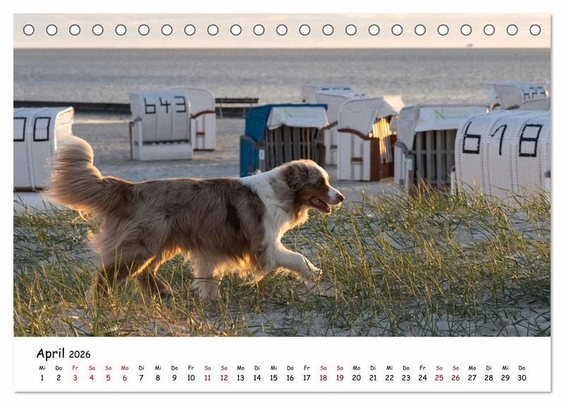 Auch Hunde fühlen sich am Meer wohl und möchten gerne mit Herrchen und Frauchen in den Urlaub fahren. In diesem Kalender sind verschiedene Hunde am Nordseestrand zu sehen, die sichtlich ihren Strandurlaub geniessen.