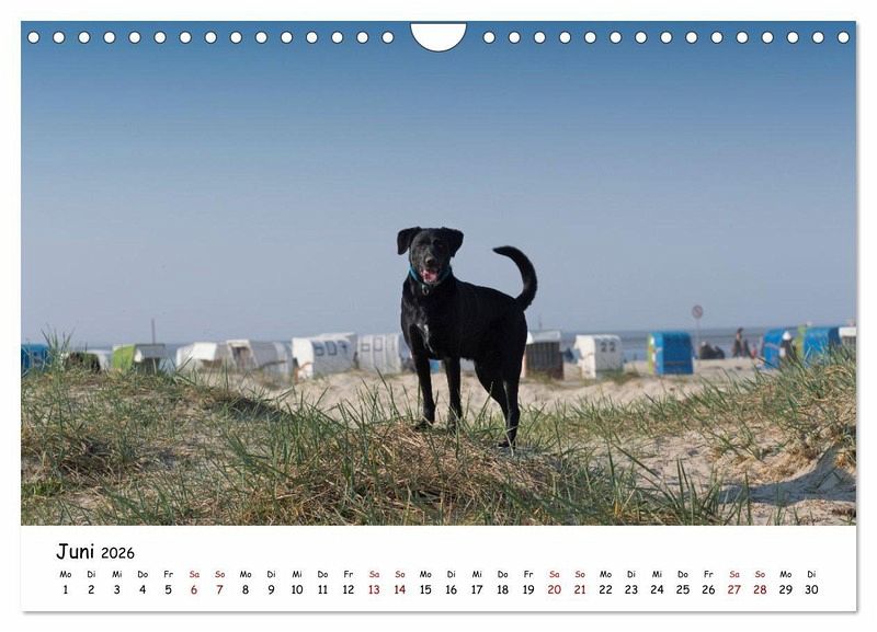 Auch Hunde fühlen sich am Meer wohl und möchten gerne mit Herrchen und Frauchen in den Urlaub fahren. In diesem Kalender sind verschiedene Hunde am Nordseestrand zu sehen, die sichtlich ihren Strandurlaub geniessen.